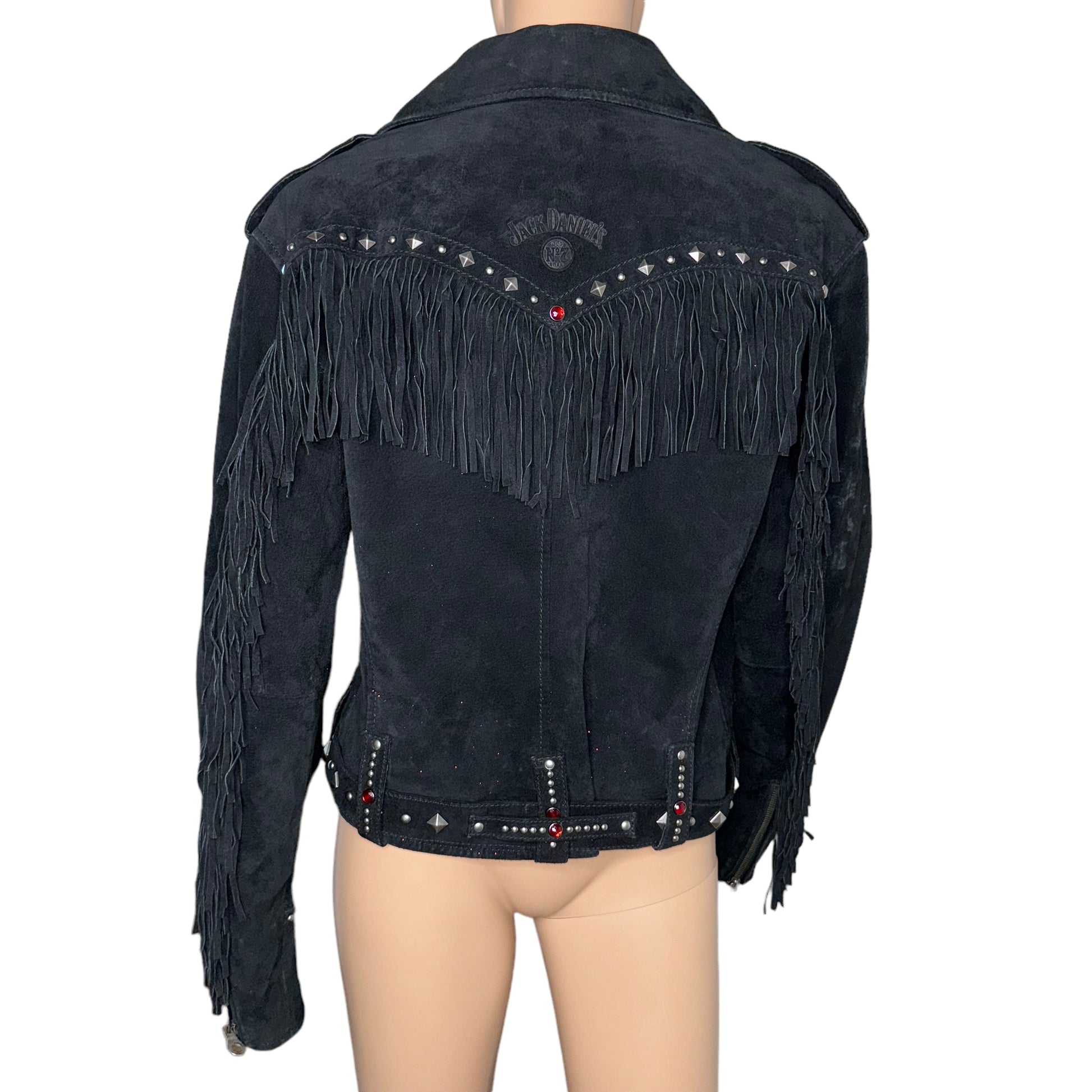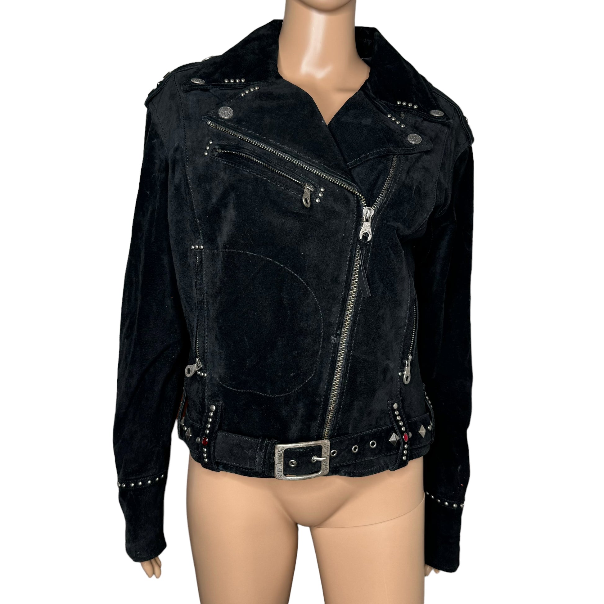 Women's Jack Daniel's Old No7 Leather Biker Jacket. size Medium. Has Fringe on back and sleeves and all of them are intact. Heavy Duty zippers, snaps and buckle. free of defects. only worn a few times. Very nice leather Jacket. Good Condition. |